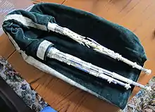 An extended ivory and silver set of smallpipes made by Archie Dagg.
