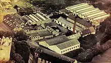 In 1881 the main four-story mill building burnt down along with Mr. Mulcahy's adjoining dwelling at Mill House. Production was rectified by 1882 with the completion of smaller replacement two-storey buildings.[3] Employment numbers were reduced to approximately 100. Rows of cottages were built by the company to house its workforce, of which had a large influence on the growth of the village and later Ardfinnan GAA as the men often played football on the green opposite the mill after a days work.[4] Electricity generated by the mill's water turbine was later provided to a total of 14 homes in Ardfinnan and all of its electric street lights until the ESB introduced the Rural Electrification Scheme which took over the supply in January 1953.[5]