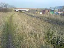 Joining the Caledonian Railway, the L&AR was absorbed into the London, Midland and Scottish Railway during the Grouping of 1923. The station was renamed Ardrossan North on 2 June 1924.[1] Other alternative names for the station were Ardrossan Montgomerie Street and Ardrossan Caledonian. The station closed to regular passenger services on 4 July 1932,[1] however it was used for special passenger services until 1939.[2][3] The line was taken into the Scottish Region of British Railways on nationalisation in 1948, seeing use for trains going to Montgomerie Pier and the nearby Shell Mex plant until 1968. All of the track north of the station was removed in 1970, however the spur line from the former Ardrossan Railway to the south remained intact serving the nearby bitumen plant until the 1980s.[4]