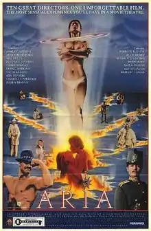 Aria is a 1987 British anthology film produced by Don Boyd that consists of ten short films by ten different directors, each showing the director's choice of visual accompaniment to one or more operatic arias. There is little or no dialogue from the actors, with most words coming from the libretto of the operas in Italian, French, or German.
