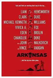 Arkansas is a 2020 American neo-noir[2] crime thriller film directed by Clark Duke in his directorial debut, from a screenplay he wrote with Andrew Boonkrong. It stars Liam Hemsworth, Clark Duke, Michael Kenneth Williams, Vivica A. Fox, Eden Brolin, Chandler Duke, John Malkovich and Vince Vaughn. It is based on the novel Arkansas by John Brandon.