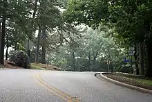 The route begins at Sunset Point on the north rim of Mount Nebo, in its respective state park, Mount Nebo State Park. It is surrounded by a dense forest while on the mountain and passes near the historic Mt. Nebo State Park Pavilion, the visitor center, and other points of interest in the park. Highway 155 winds down the mountain on eleven hairpin curves with very steep grades, as much as 18% in places. There are no alternative routes, as Route 155 is the only road up or down the mountain. As a result, the route is a popular destination for motorcycle riders, and trailers or RVs over 24 feet are prohibited in the state park.[5] It eventually points due east toward Dardanelle. The route intersects with Highway 22 in the city and terminates.