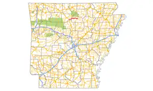 Arkansas Highway 66 (AR 66 and Hwy. 66) is an east–west state highway in north central Arkansas. The route of 30.16 miles (48.54 km) runs from US Route 65 in Leslie east to AR 9 in Mountain View.[2][3]