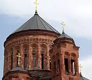 The Armenian Cathedral of Moscow,[6][7] officially known as Holy Transfiguration Cathedral (Armenian: Սուրբ Պայծառակերպության եկեղեցի,[8] Surb paytsarakerputyan yekeghetsi; Russian: Собор Преображения Господня), is the seat of the Diocese of Russia of the Armenian Apostolic Church. Constructed in seven years, it was consecrated in September 2013 by leaders of the Armenian Apostolic and Russian Orthodox churches. It is considered the largest Armenian church[lower-alpha 1] and church complex[lower-alpha 2] outside Armenia.