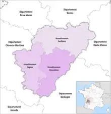 - ↑ "Arrondissement d'Angoulême (161)". INSEE. Retrieved 2019-09-27.