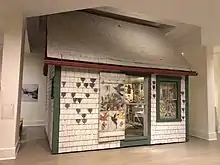 As of June 2017, the museum had 55 works by Maud Lewis,[21] making the museum's collection the world's largest public collection of works by her.[22] The works are displayed in the gallery's Maud Lewis exhibit, which is the most visited exhibition space in the museum according to the institution.[22] In addition to works by Lewis, the museum's collection also includes her house. Lewis's house was purchased by the Government of Nova Scotia after her death.[23] In 1996, the museum took possession of the home, moving the small building into its Maud Lewis exhibit, along with some restoration work.[24]