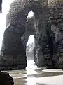 Praia das Catedrais (Spanish: playa de las Catedrales, English: Beach of the Cathedrals) is on the northwest coast of Spain. It is the name given by the tourism industry to Praia de Augas Santas (translated from Galician: 'Beach of the Holy Waters'). The beach is located in the Ribadeo municipality, in the province of Lugo (Galicia), on the Cantabric coast, and it lies about ten kilometres to the west of the town of Ribadeo. Its name is derived from its cliff formations.