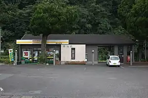 The station consists of a side platform serving a single track. The station building is a modern structure but built in traditional Japanese style with a tiled roof. It houses a waiting room, a ticket booth (unstaffed) and the local tourism information centre.[2][3]