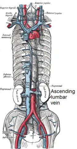 - the azygos vein (in the case of the right ascending lumbar vein).[1][2]