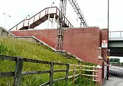 East of the station, towards Gorton and Belle Vue,[1] there were two engine sheds.[2] The larger was the GCR's Gorton loco shed (1879-1965)[3] and the smaller, the Midland Railway's Belle Vue loco shed (1870-1956).[4] The Gorton shed had a ferro-concrete coaling tower.[5]
