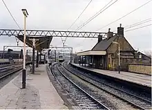 When Sectorisation was introduced in the 1980s, the station was served by Regional Railways under arrangement with the Greater Manchester PTE until the privatisation of British Rail. The main station buildings, subway and a third platform face survived until the end of the 1980s, but all have since been removed.[6][7]