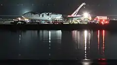 The National Transportation Safety Board (NTSB) sent a team of 20 to the scene to investigate.[12][37] On July 7, 2013, NTSB investigators recovered the flight data recorder and cockpit voice recorder and transported them to Washington, D.C., for analysis.[81] Additional parties to the investigation include the Federal Aviation Administration, airframe manufacturer Boeing, engine manufacturer Pratt & Whitney, and the Korean Aviation and Railway Accident Investigation Board (ARAIB). ARAIB's technical adviser is Asiana Airlines.[12]