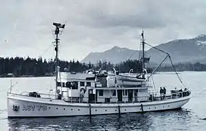 Astoria Marine Construction built 79-foot trawlers including the Trask and the Shirley Lee. Astoria Marine Construction built a 58-foot seiner without an order and took two years to sell. Dyer built a CROD, the Tom Tom for himself in 1945. Astoria Marine Construction worked the reserve fleet at Tongue Point. For the Navy, and National Defense Reserve Fleet, Astoria Marine Construction worked on "mothballing" ships and boats. Astoria Marine was able to rent two Auxiliary Repair Docks (ARD) Auxiliary floating drydock to repair large ships and boats.[2] NOAAS Oregon was built in 1946 under a US contract with Reconstruction Finance Corporation, to help with the shortage of fishing boats after the war. Many good fishing boats had been used for patrol boats. In 1949 she was acquired by the United States Department of the Interior for fish and wildlife work. In 1970 Oregon was acquired by the National Oceanic and Atmospheric Administration (NOAA) and used the Oregon for 10 years.[14]