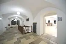 Typical of its time and area, it has many baroque architectural features, like cross-vaulted ceilings. The outside walls are built on the former city walls and are up to two meters thick.
