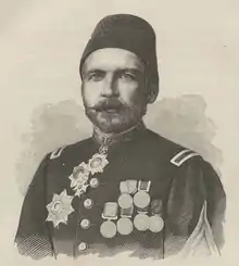 On August 20, the Ottoman ministry of foreign affairs informed Nicholas of Montenegro that Mehmed Ali Pasha had been designated to carry out the process. The first task of the marshal was to pacify the league in order to avoid any border conflicts during the territory transfer. However, Mehmed Ali Pasha was highly unpopular among Albanians as he had been the Ottoman representative in the congress of Berlin and in 1871 had led Ottoman troops during an Albanian revolt.[2] Upon arriving in Prizren on August 25, he called a meeting with leading members of the league the following day and gave them a 24-hour ultimatum to cease their activities against the area transfer. On August 27, none of the leaders attended the renewed meeting and a local member killed the marshal's telegrafist in the Marash cafe club of the city. To avoid the escalation of attacks on August 31 Mehmed Ali Pasha left Prizren and reinforced with three battalions move to Gjakova, where he was stationed in the estate of Abdullah Pasha Dreni, a former leader of the local league committee who had joined the Ottoman faction.[1]