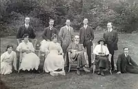 George Arthur Dunn (1865–1939) was an extremely wealthy businessman. He was the owner of the famous menswear company Dunn and Co which specialised in men's hats. In 1884 he married Lucy Day (1863–1939) and the couple had nine children who can be seen in the photo taken at "The Aubreys" in 1918.