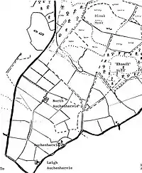 A map of the area, with the Auchenharvie's, Bloak & Kennox mosses. The castle ruins are at Auchenharvie farm.
