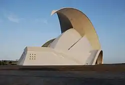 The Auditorio de Tenerife "Adán Martín"[1][2][3] (commonly referred to as the Auditorio de Tenerife) is an auditorium in Santa Cruz de Tenerife, Canary Islands, Spain. Designed by architect Santiago Calatrava, it is located on the Avenue of the Constitution in the Canarian capital, and next to the Atlantic Ocean in the southern part of Port of Santa Cruz de Tenerife. Construction began in 1997 and was completed in 2003. The auditorium was inaugurated on 26 September of that year in the presence of Felipe, Prince of Asturias, and was later visited by former U.S. President Bill Clinton. The building is framed within the tenets of late-modern architecture of the late 20th century.