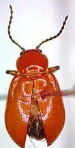 The beetle subfamily Aulacoscelidinae (sometimes misspelled "Aulacoscelinae") is a small, uncommonly-encountered group presently classified within the family Orsodacnidae, historically placed as a subfamily of Chrysomelidae, or sometimes classified as a separate family Aulacoscelidae. There are only 19 species, mostly Neotropical in distribution, and their larval habits are unknown.[1][2][3]