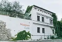 Behind the Oświęcim synagogue there is a 100-year-old house in which the Jewish Kluger family lived before the war. Only three of their children survived the Holocaust, including Shimson Kleuger (1925-2000), who from 1961 until his death again lived in the family home.[10] The building was then donated by his heirs to the Auschwitz Jewish Center, which in 2013 carried out a major renovation and conversion to the Cafe Bergson museum café, along with educational and exhibition space. The original entrance door with a trace of the mezuzah has been preserved and the historical elements of the building inside have been exposed. At Cafe Bergson, cultural and educational projects are carried out on both the past of Oświęcim and the contemporary subject of human rights and the natural environment.