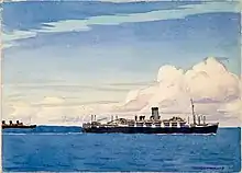 3 Days Out from New Zealand, 1940, a watercolour by Austen Deans of the troopship convoy transporting elements of the 2NZEF to the Middle East