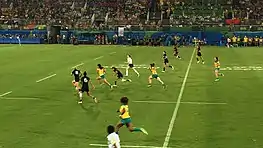 Australia with possession during the women's final at the 2016 Olympic Sevens.