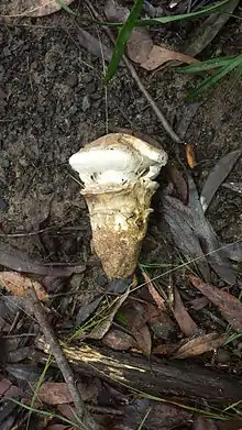 Austrocortinarius australiensis, commonly known as the skirt webcap, is a species of mushroom in the family Cortinariaceae[2] which is native to Australia and New Zealand. The white mushrooms appear in autumn and can grow very large, with their caps reaching 30 cm (12 in) in diameter.