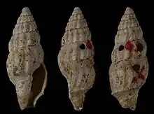 | Shell of † Austromitra lacertosa (specimen at MNHN, Paris) | |