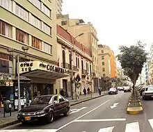 Its journey from west to east covers 17 blocks. It was named in honor of former President Nicolás de Piérola since it was in 1898 during his government that this road was inaugurated as part of the works to modernize the layout of the city.[2] For much of the 20th century it was an aristocratic street in the city, which is still reflected in its republican-style buildings that resemble Avenida de Mayo in Buenos Aires. However, during the 1980s, it deteriorated, falling prey to crime and prostitution.[3]