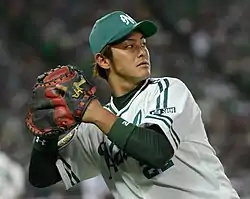 Ayatsugu Yamashita (山下 斐紹, Yamashita Ayatsugu, born November 16, 1992) is a Japanese professional baseball catcher. He has played in Nippon Professional Baseball (NPB) for the Fukuoka SoftBank Hawks and Tohoku Rakuten Golden Eagles and Chunichi Dragons.