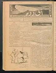 The Ottoman Turkish satirical magazine Aydede (Ottoman Turkish: آى دده) appeared in a first episode from January to November 1922 twice a week in 90 issues.[1]