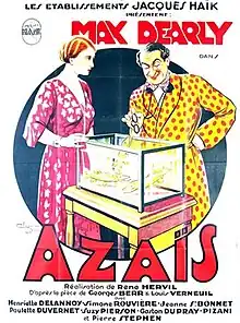 Azaïs is a 1931 French comedy film directed by René Hervil and starring Max Dearly, Simone Rouvière and Jeanne Saint-Bonnet.[1] It is based on a play of the same title by Georges Berr and Louis Verneuil.[2] The film's sets were designed by the art director Jean d'Eaubonne.