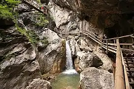 The Bärenschützklamm ("Bärenschütz Gorge") is a narrow valley in the Graz Highlands in the Austrian Central Alps. It was carved out of limestone by the Mixnitzbach ("Mixnitz Creek") and is a popular tourist destination.