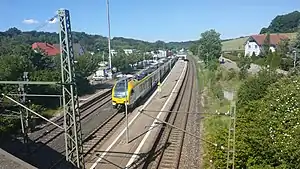 Böbingen (Rems) station is a railway station in the municipality of Böbingen an der Rems, located in the Ostalbkreis district in Baden-Württemberg, Germany. The station lies on the Stuttgart-Bad Cannstatt–Nördlingen railway. The train services are operated by Go-Ahead Baden-Württemberg.[2]