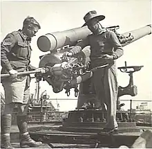 - ↑ Mk IX = Mark 9. Britain used Roman numerals to denote Marks (models) of ordnance until after World War II. Mark IX indicates this was the ninth model of BL 4-inch gun.