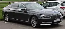 The G11 was unveiled on 10 June 2015 at BMW's headquarters in Munich.[4] An official public reveal took place at the 2015 International Motor Show Germany. This generation of the 7 Series is the first car lineup of BMW to be based on the CLAR platform.[5] The CLAR platform adopts technology first introduced in BMW i models, namely the introduction of carbon-fibre-reinforced polymer as structural chassis components. Long-wheelbase cars have the letter "L" in their model name.[6]