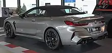 Introduced in June 2019, the M8 was initially produced in the 2-door convertible (F91 model code) and 2-door coupe (F92 model code) body styles.[3][4] A 4-door sedan (F93 model code, marketed as 'Gran Coupe') body style was added to the lineup in October 2019.[5][6][7][8] The M8 is powered by the BMW S63 twin-turbocharged V8 engine shared with the BMW M5 (F90).