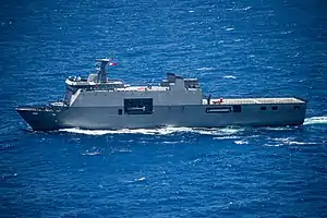BRP Davao del Sur (LD-602) is the second ship of the Tarlac-class landing platform dock of the Philippine Navy.[1] She is the second ship to be named after the Philippine province of Davao del Sur, one of the main provinces in Mindanao in Southern Philippines. She was launched on 29 September 2016[2] and was commissioned into service on 31 May 2017.[3]