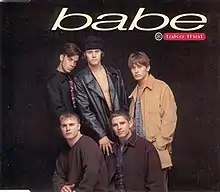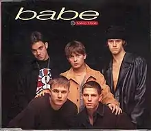 Released on 6 December 1993,[1][2] "Babe" became Take That's third single in a row to go straight to number one on the UK Singles Chart, knocking Mr Blobby's self-titled novelty single from the number-one slot in the process.[3] With this achievement, Take That became the first band to have three consecutive singles debut at number one.[4] The following week, Mr Blobby's single climbed back to number one, denying Take That the Christmas number-one place.[3] The single sold 350,000 copies in 1993, and was that year's 14th biggest-selling single.[5] The song was certified platinum on 1 January 1994 for shipments of over 600,000 copies in the UK.[1]