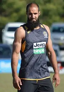 Bachar Houli (Arabic: بشار حولي, born 12 May 1988) is a former Australian rules footballer who played 232 games over a 15-year career with Richmond and Essendon in the Australian Football League (AFL). He is a three-time premiership player with Richmond and was named an All-Australian half-back during his 2019 premiership winning season. Houli is the first devout Muslim and third Muslim overall to play in the AFL.