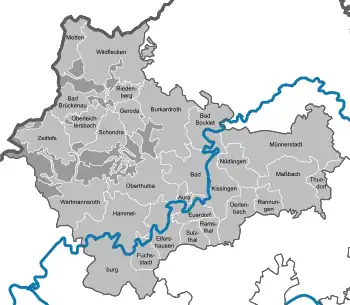 Bad Kissingen is a Landkreis (district) in Bavaria, Germany. It is bounded by (from the northwest and clockwise) the district Main-Kinzig and Fulda in Hesse, and the districts of Rhön-Grabfeld, Schweinfurt and Main-Spessart.
