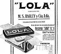 Nevertheless, it was not until 1875 when Bagley entered to the food market. That year, the company started producing biscuits after the Government of Argentina exempted the company from the custom duties so they could import the necessary machinery to produce food. Until then, cookies and biscuits were imported from the United Kingdom. The first biscuit produced was named Lola and became an immediate success. The biscuit was also used in hospitals as a food for patients.[9]