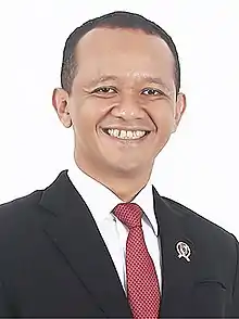 Bahlil Lahadalia (born 7 August 1976) is an Indonesian businessman and politician. He has been serving as Minister of Investment since April 2021, dual-hatted as head of the Indonesian Investment Coordinating Board (BKPM), which he had served since October 2019.[1] He has also served as Minister of Energy and Mineral Resources ad interim since 3 February 2022.[2][3][4]