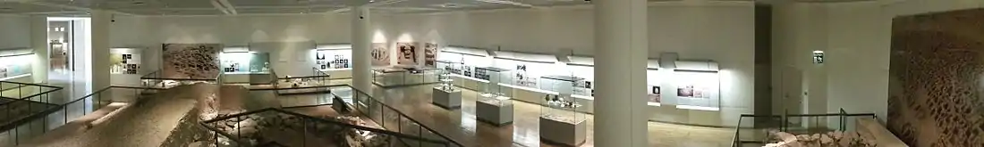 The exhibit focuses on burial practices of the Dilmun civilization and features an actual burial mound which was transported from its site A'ali and reassembled within the museum.[8] The hall was closed for renovation in 2013 and re-opened to the public on 26 June 2018. Re-designed by French architect Didier Blin, the revamped hall features newly installed multimedia as well as findings from the most recent archaeological excavations.[2] In 2019, the Dilmun Burial Mounds of Bahrain were recognized as a UNESCO World Heritage Site.[10]