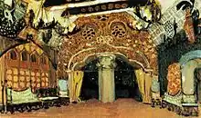 Are creations of eminent artists working in the theatre: Pietro Gonzaga, Ivan Bilibin, N. Roerich, Fyodor Fedorovsky, Aleksandr Golovin, Mikhail Vrubel, Alexandre Benois, Léon Bakst, Konstantin Korovin, Boris Anisfeld, Aleksandra Ekster, Natalia Goncharova, Mstislav Dobuzhinsky, Robert Falk, Vladimir Tatlin, Alexander Tyshler, Boris Kustodiev, Konstantin Yuon, Nathan Altman, Aristarkh Lentulov, Yuri Annenkov, Nikolai Akimov, Sergei Eisenstein, Alexander Rodchenko, Pyotr Williams, Boris Messerer, Valery Levental, Eduard Kochergin and others.