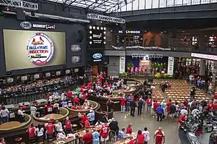 • Bally Sports Midwest Live! a marketplace and event venue with a retractable canopy. Intended to be the main gathering place in Ballpark Village, it connects the Brew House and Cardinal Nation buildings.[1][8]