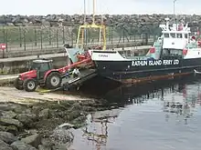 A ferry runs between the town and Rathlin Island as part of a lifeline service. Since 2008 this ferry has been operated by the Rathlin Island Ferry Ltd[20] but previously it had been operated by Caledonian MacBrayne beginning in 1996.[21]