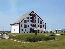 The Entrepôt Lebouthillier (English: Lebouthillier Warehouse) is the largest building on site. The building is approximately 30 metres (98 ft) tall and is the main symbol of Paspébiac.