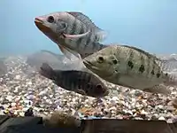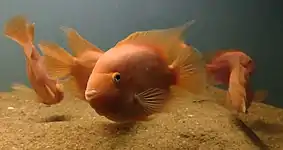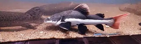 Fish that can be seen at the aquarium include eels, angelfish, glowlight tetra, hockey stick tetra, red-tail shark, catla, Indian tiger barb, mahseer, freshwater prawns, blue gourami, pearl gourami, gold fish, moon tail, and more.[1][2]