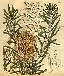 - ↑ Bentham, George (1870). "Banksia". Flora Australiensis: A Description of the Plants of the Australian Territory. Vol. 5: Myoporineae to Proteaceae. London: L. Reeve & Co. pp. 541–562.